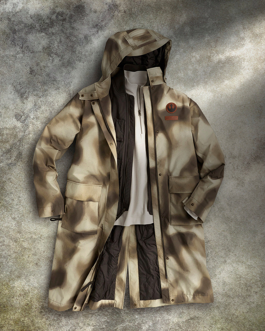 Inspirado en los looks de Leia Organa™ y Luke Skywalker™ en la luna de Endor, el poncho de THE ENDOR COLLECTION está diseñado para moverte con libertad y adaptarte a terrenos impredecibles.