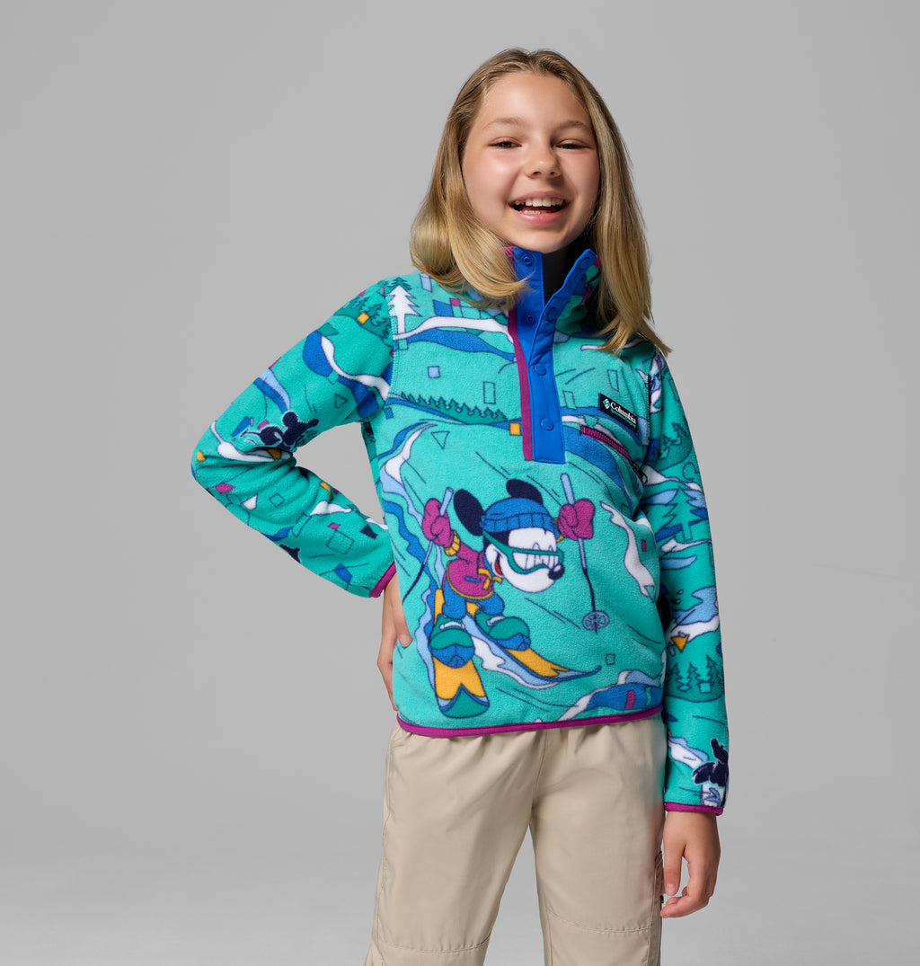 Mantenlos abrigados con este forro polar de edición especial con estampados retro de los 90 que muestran a Mickey & Friends de Disney en unas vacaciones de esquí de ensueño. El ribete en puños y dobladillo mantiene el calor dentro y bloquea el frío.